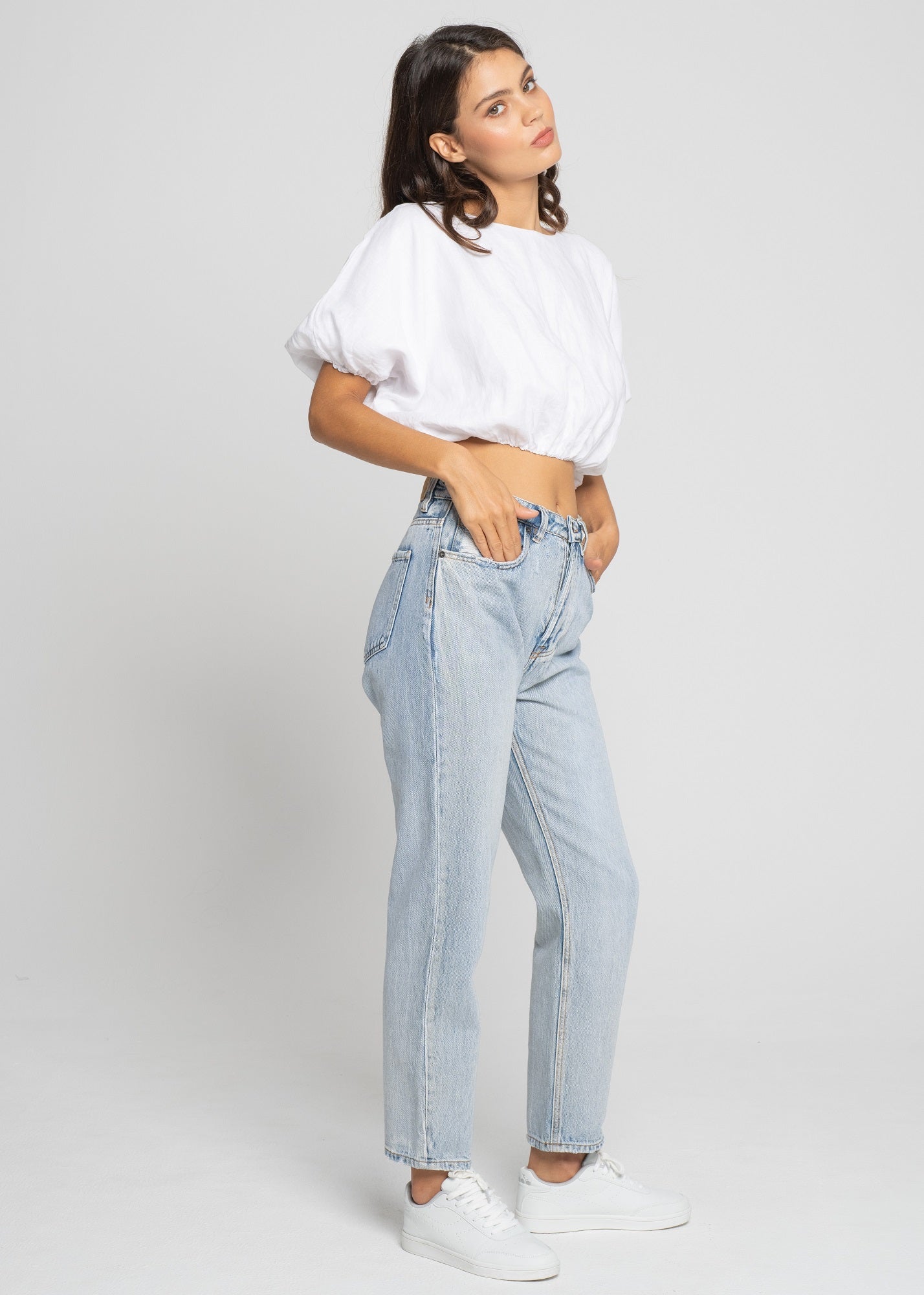 Stand out in our Bad Habits Top! This elevated boho piece will pair well with so many favourite separates across seasons. It features gorgeous balloon sleeves, a elasticated hem and sleeves and a relaxed cropped fit that draws attention to the waist.